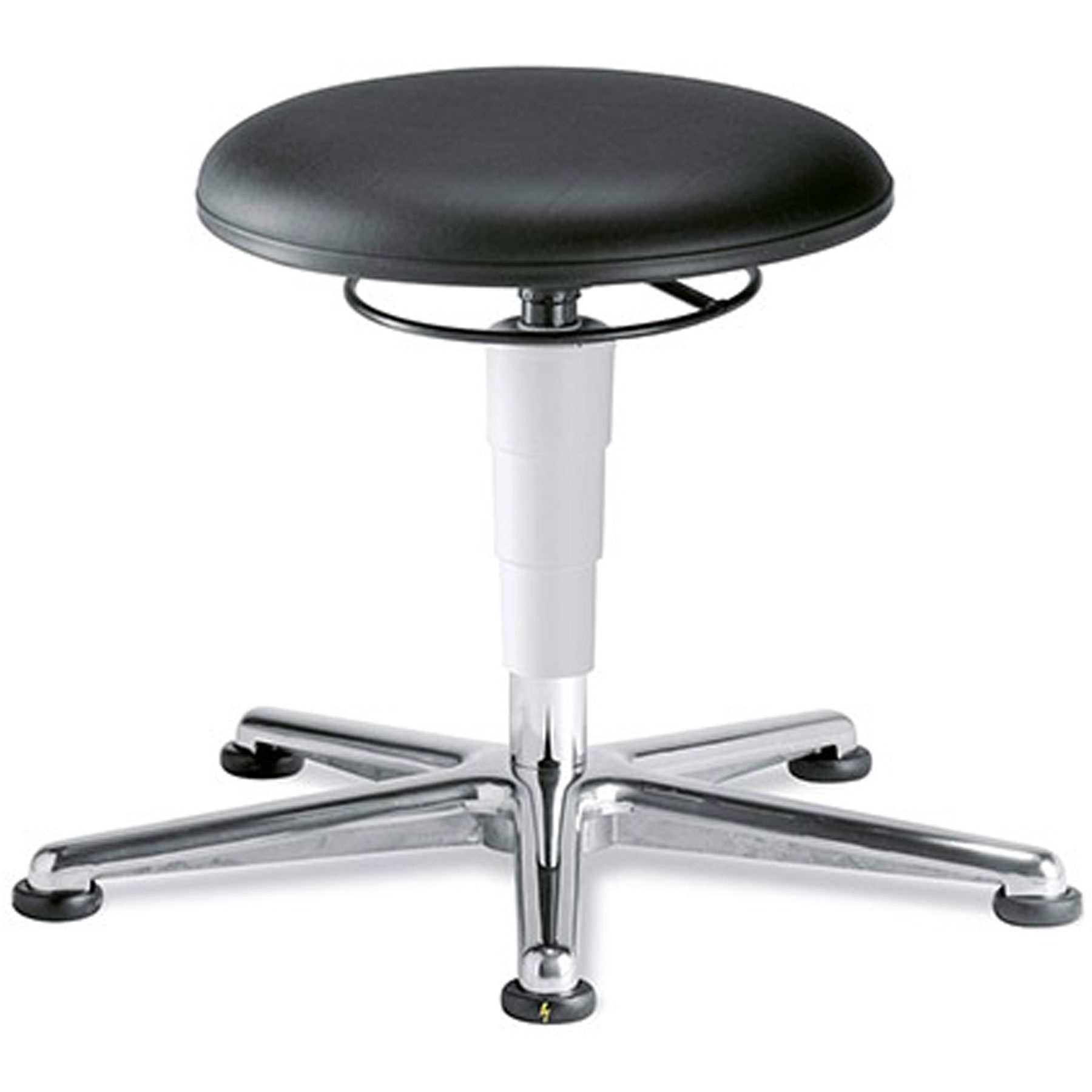 Reinraum Drehhocker 1 mit Gleiter, Sitzhöhe 460-630mm, Oberfläche Sitz: Kunstleder Skai ESD schwarz, 5-strahliges Aluminium-Fußkreuz poliert, Ringauslösung, zerlegt im Karton.