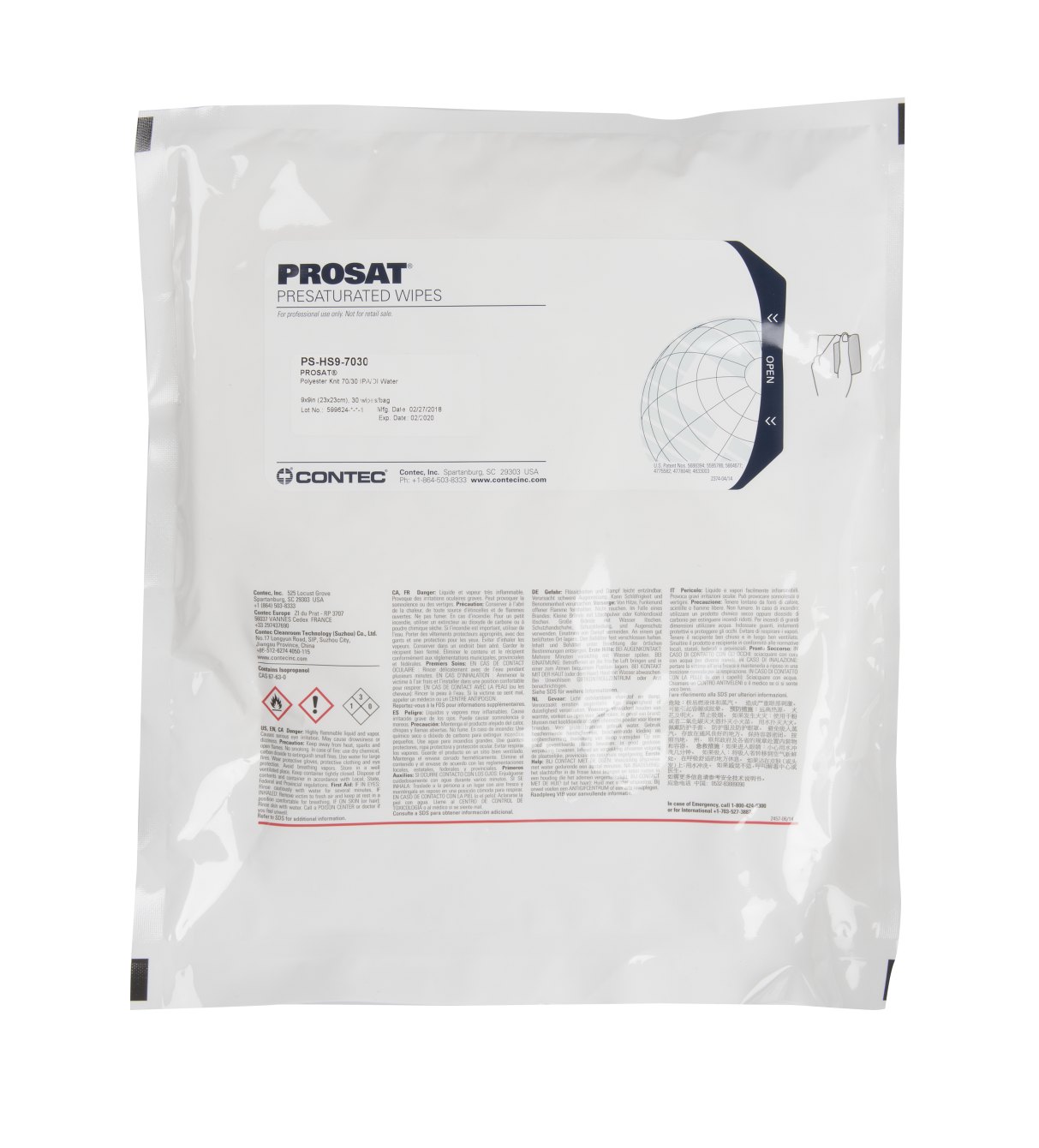 Polynit Heatseal wipes presaturated with 70% IPA/30% DI Water.